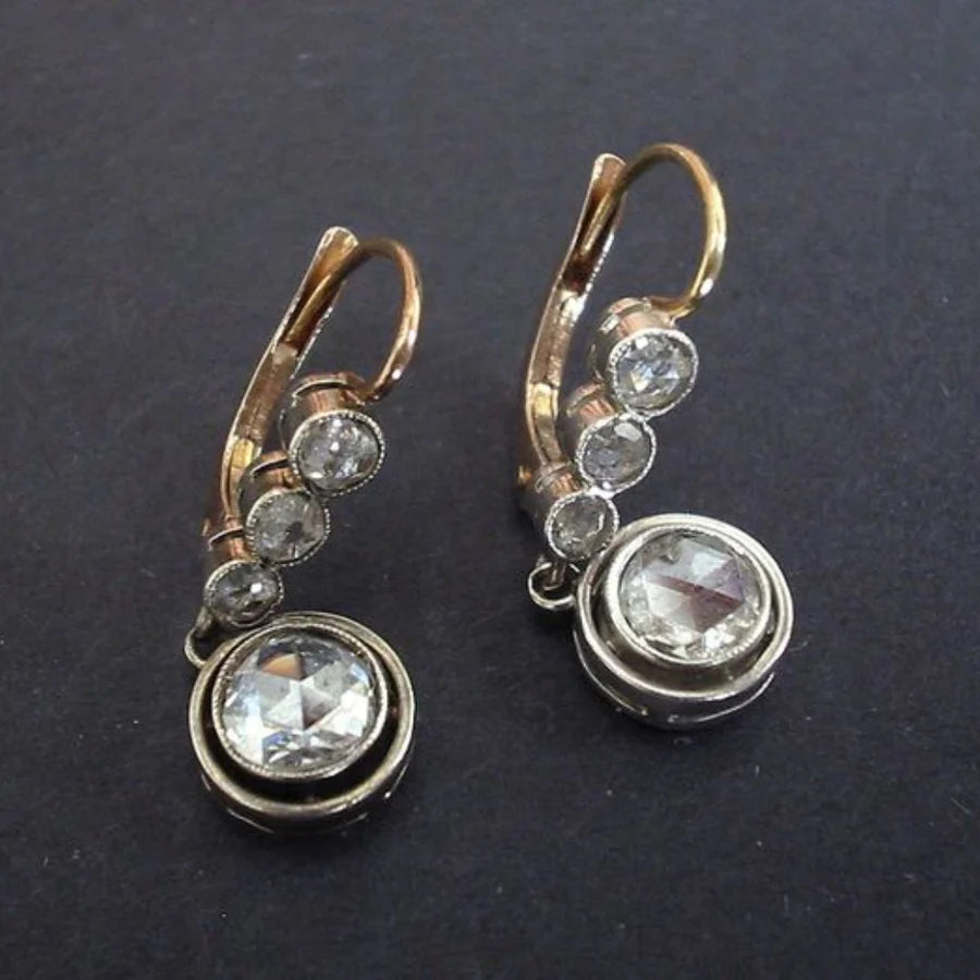 Antique Drop Gold & Silver Earrings | White Gold 16k